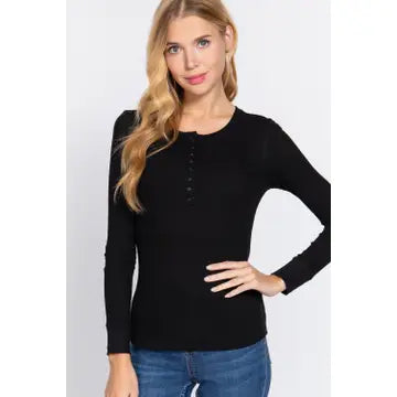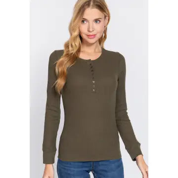 LONG SLEEVE HENLEY THERMAL KNIT TOP